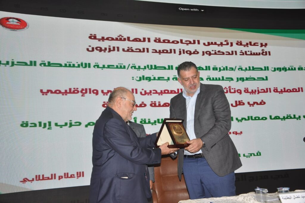 البطاينة: مخاوف التحزب أصبحت جزءا من الماضي* البطاينة: أصبح بمقدور طلاب المكرمة الملكية من التحزب دون أن يؤثر ذلك على مكرمتهم.* البطاينة للشباب: انتم المستفيد الأول من عملية التحديث السياسي، والمتضرر الأول من العزوف عن التحزب* البطاينة: نحن بحاجة الى أحزاب برامجية طموحة تنقل الأردن الى الإعتماد على الذات* البطاينة: العمل الحزبي هو السبيل للخلاص الجماعي لما نعانيه من تحديات في كافة المجالات التقى الأمين العام لحزب إرادة نضال البطاينة وفريق الأمانة العامة مع طلبة كل من الجامعة الهاشمية وجامعة مؤتة في حوارات مفتوحة وصريحة. فتحت عنوان “أهمية العملية الحزبية وتأثيرها على الصعيدين الوطني والإقليمي في ظل الأحداث الراهنة في غزة” وبحضور رئيس الجامعة الهاشمية الدكتور فواز عبدالحق الزبون، أكد الأمين العام لحزب إرادة نضال البطاينة أن مخاوف الانضمام للأحزاب أصبحت جزءا من الماضي وهواجس لا وجود لها الآن، وأشار إلى انطلاق مسيرة الإصلاح السياسي من أوسع أبوابها وإقرار قانوني الأحزاب والإنتخاب، بضمان من جلالة الملك عبدالله الثاني، وحماية القانون لمن ينضم للأحزاب، واضاف البطاينة أن طلاب المكرمة الملكية أصبح بمقدورهم الآن التحزب دون أن يؤثر ذلك على مكرمتهم.وأضاف البطاينة أن الشباب مطالبون اليوم أكثر من أي وقت مضى في الإنخراط في الأحزاب التي تطرح برامج وطنية خالصة، وليس لها أي أجندة خارجية حيث قال “تلك الأحزاب التي تنبع من تراب هذا الوطن وثوابتها الوطن والمواطن والملك والقوات المسلحة، ودون هذه الثوابت فانه خاضعا للنقاش”.وخاطب البطاينة الطلبة في كل من جامعة مؤتة والجامعة الهاشمية “أنتم المستفيد الأول من عملية التحديث السياسي، والمتضرر الأول من العزوف عن التحزب.”وقال البطاينة إن الأيديولوجيا التي يقوم عليها الحزب لها شأن في كل الأحزاب، ولكنها وحدها لا تكفي لبناء أحزاب وطنية برامجية، مؤكدا أن الأردن يحيطه إقليما ملتهبا وتسوده الإضطرابات، وهذا يجعلنا بحاجة ماسة إلى أحزاب برامجية حقيقية طموحة، تنقل الأردن إلى الاعتماد على الذات، خاصة أن خياراته الاستراتيجية تتضاءل يوما بعد، يوم لرفضه المساومة على القضية الفلسطينية.وأوضح أن العمل الحزبي البرامجي يعلي شأن المصلحة العامة، وهو السبيل للخلاص الجماعي لما نعاني من تحديات في كافة المجالات، فمن خلال بوابة الأحزاب يتم افراز نواب يقومون بمهامهم التشريعية والرقابية على أكمل وجه، وتفضي الى الوصول الى حكومات حزبية تحمل برنامجا يطرح الحلول لقضايا الفقر والبطالة ومحدودية الاستثمار، وتوفير تأمين صحي شامل لجميع المواطنين.وأكد البطاينة على موقف حزب إرادة من العدوان على غزة، والداعي الى وقف العدوان وفتح المعابر وايصال كل أنواع المساعدات للأشقاء، والتأكيد على دعم موقف الأردن الرسمي والشعبي بقيادة جلالة الملك عبدالله الثاني الداعم للأشقاء وتقديم كل أنواع الدعم لهم، وتمتين الجبهة الداخلية.وكان رئيس الجامعة الهاشمية الدكتور فواز عبدالحق الزبون رحب في بداية اللقاء بالأمين العام لحزب إرادة مؤكد حرص الجامعة على فتح آفاق الحوار البناء مع الطلبة حول مختلف القضايا الوطنية وأهمها الانضمام للأحزاب.