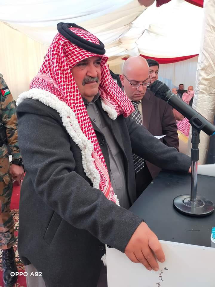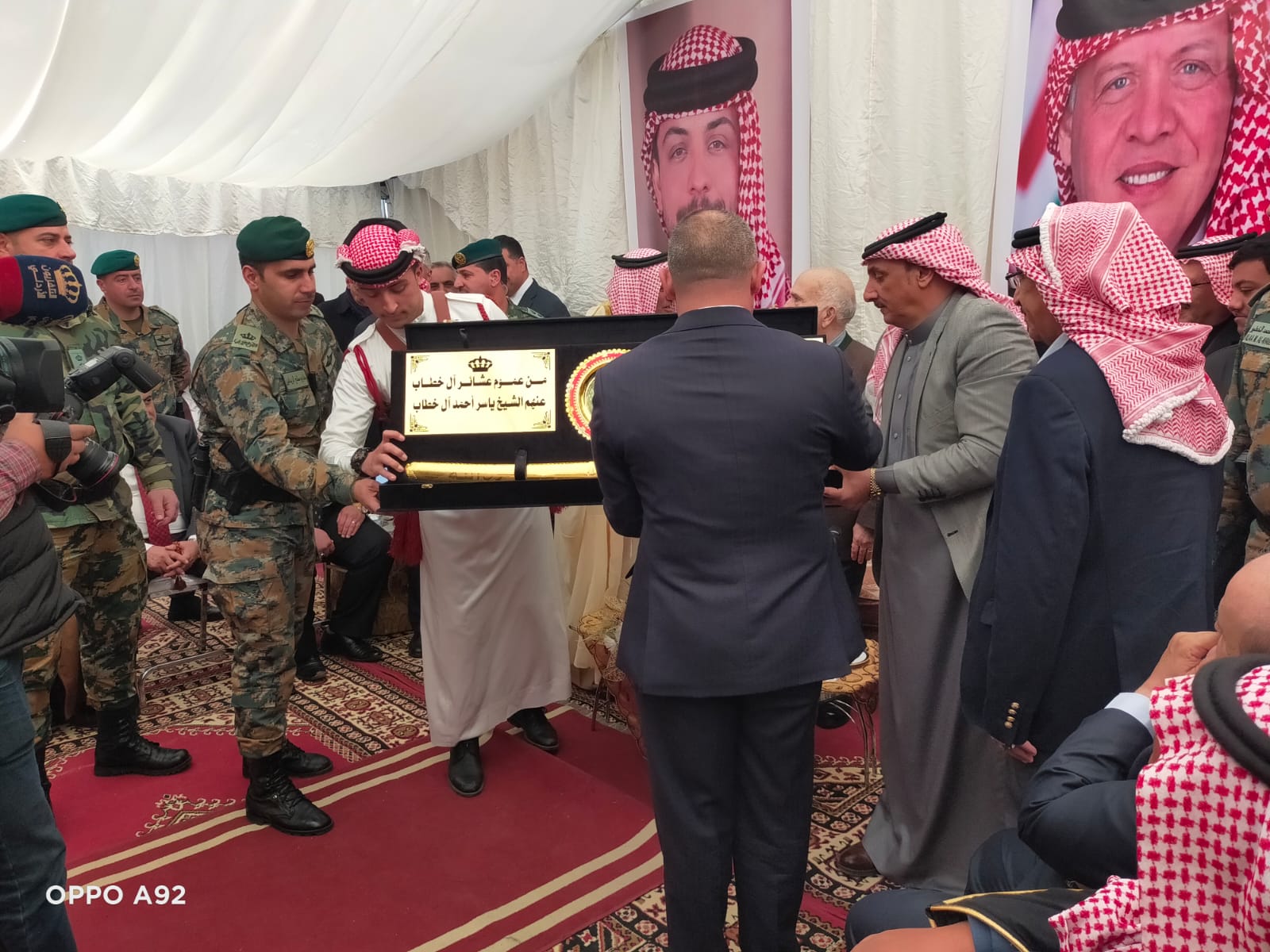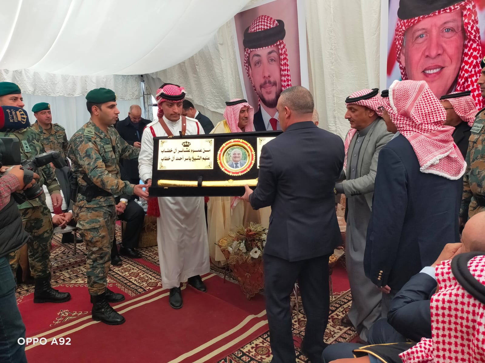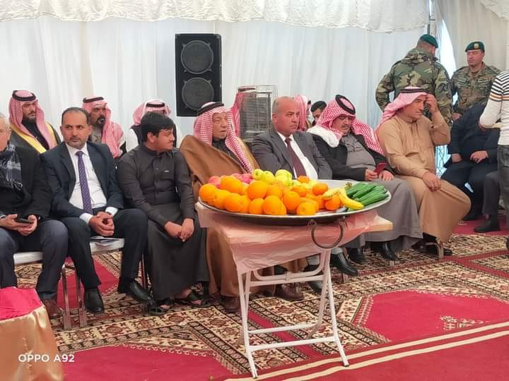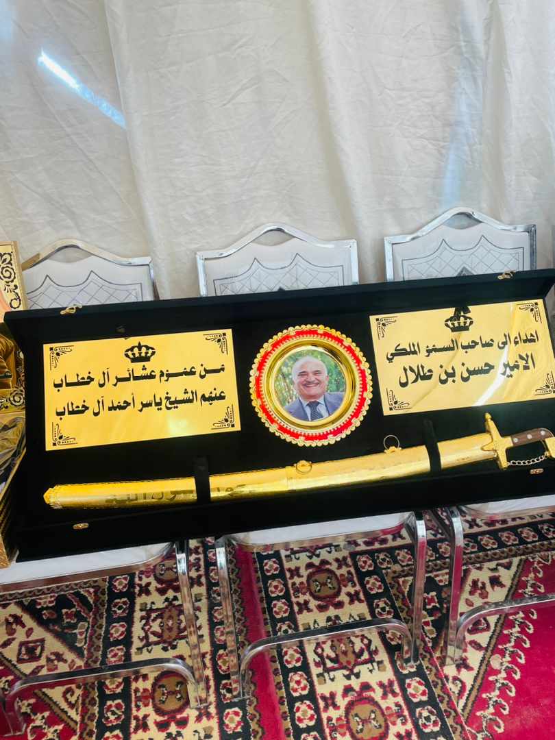 وقدم الشيخ ياسر ابو عقلة نيابة عن عموم عشائر آل خطاب سيفا لسموه كهدية تذكارية.