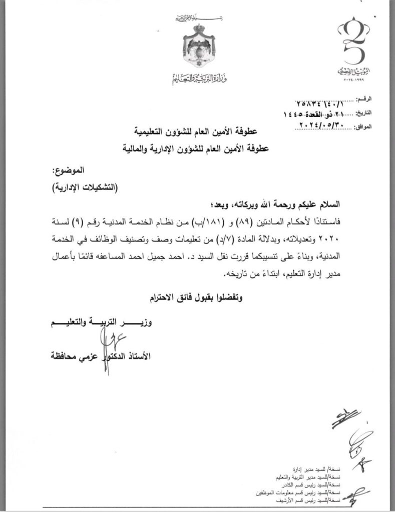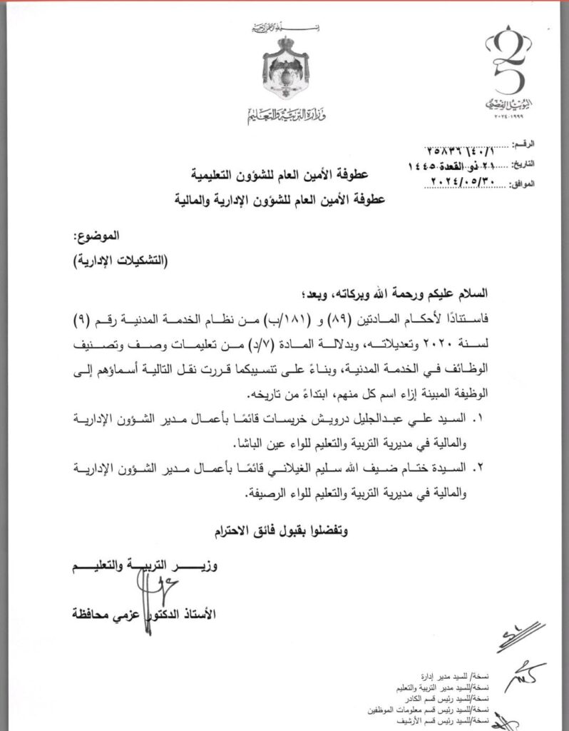 عاجل : تشكيلات إدارية وإحالات على التقاعد في التربية