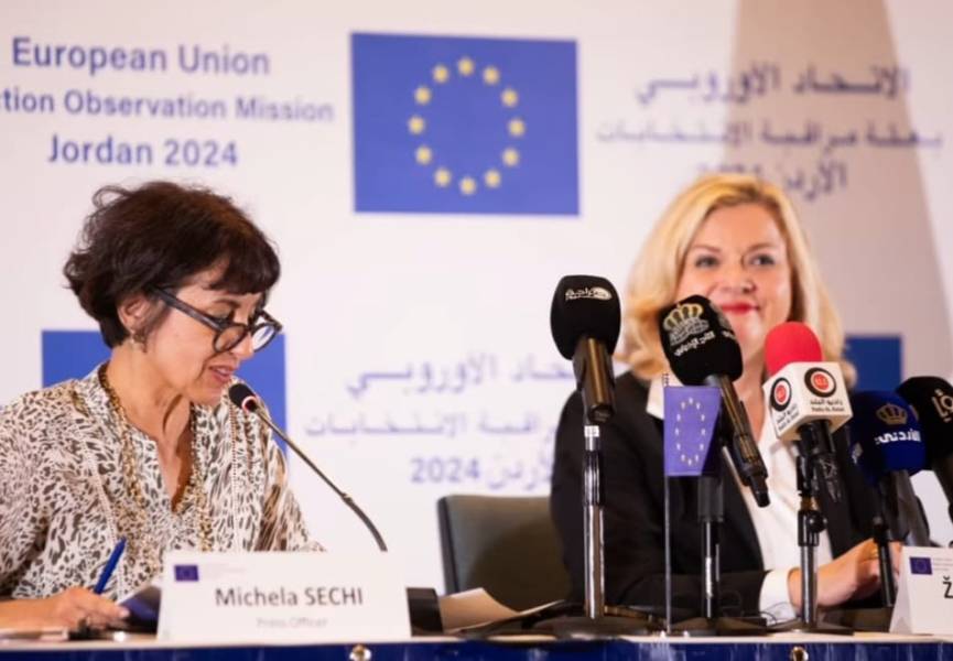 عقدت بعثة الإتحاد الأوروبي لمراقبة الإنتخابات النيابية في الأردن مؤتمراً صحفياً اليوم في العاصمة عمّان بفندق الشيراتون بهدف اعلان تقريرها النهائي المتضمن 18 توصية تهدف إلى تعزيز الإصلاحات الإنتخابية التي جرت في العاشر من شهر لسنة 2024 ، مُقدمةً 18 توصية تهدف