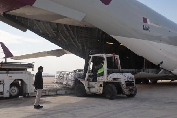 وصلت اليوم إلى مطار دمشق الدولي، طائرة تابعة للقوات المسلحة القطرية، تحمل على متنها مساعدات إنسانية تتضمن 19 طناً من المواد الغذائية، مقدمة من صندوق قطر للتنمية.