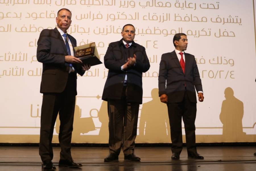 وزير الداخلية يرعى حفل جائزة الموظف المثالي في القطاع العام لمحافظة الزرقاء لعام 2024