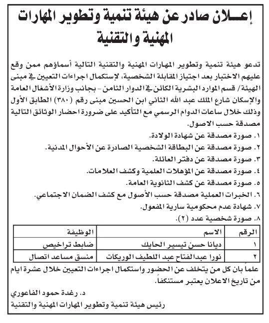 وظائف شاغرة ومدعوون لاستكمال اجراءات التعيين (أسماء)