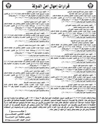 ونشرت المحكمة، أسماء المتهمين، عملا بأحكام المادة 243 /2 من قانون أصول المحاكمات الجزائية رقم 9 لسنة 1961.