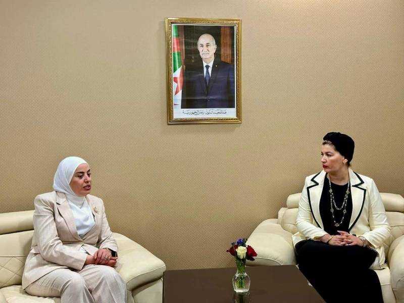 وعلى صعيد آخر، إلتقت بني مصطفى، نظيرتها الجزائرية د. صورية مولوجي، وزيرة التضامن الوطني والأسرة وقضايا المرأة.