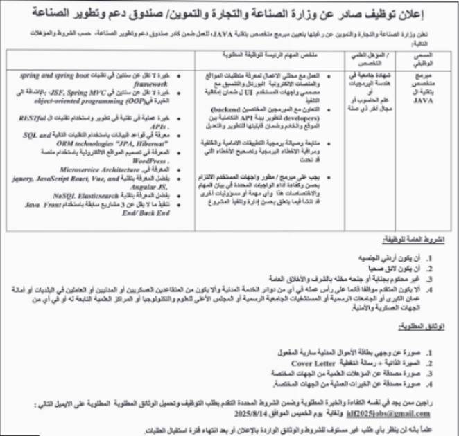 دعت وزارة الصناعة والتجارة، اليوم الاثنين عن حاجتها لتعبئة وظائف شاغرة.