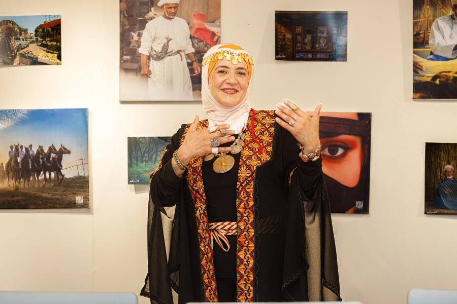 وفي ركن آخر نجد معروضات للقطاع الخاص بالمرأة التي تبدع في تقديم منتجاتها في التطريز والحياة من شجر الموز وسعف النخيل كما أشارت السيدة دولا النمّري.