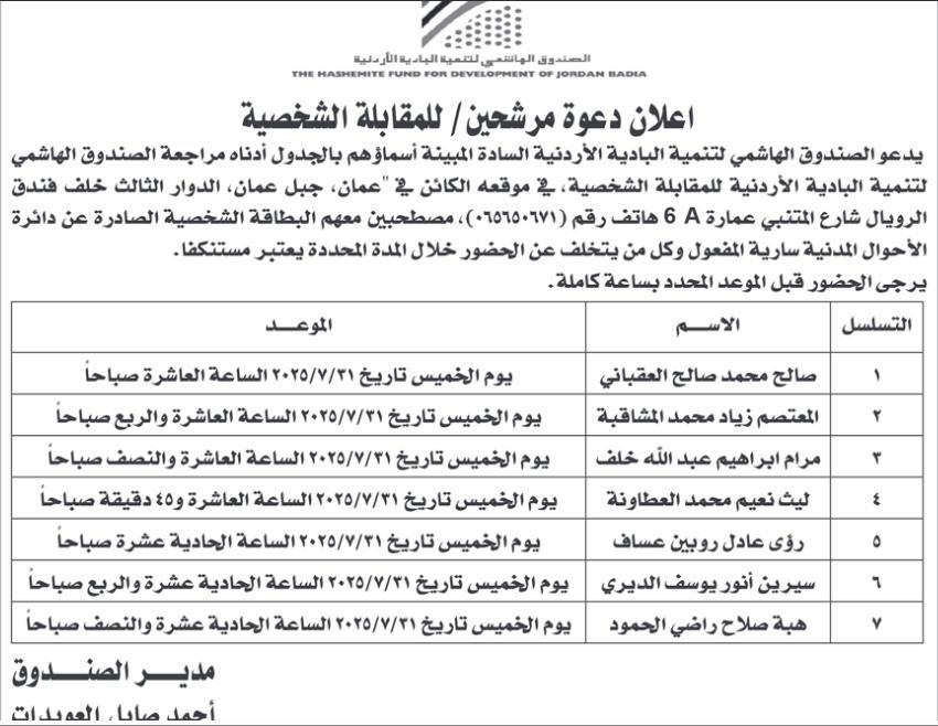 دعت مؤسسات حكومية الأربعاء التالية أسماؤهم لإجراء المقابلة الشخصية