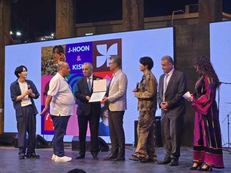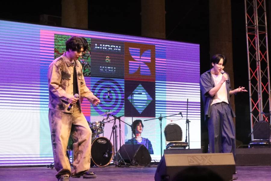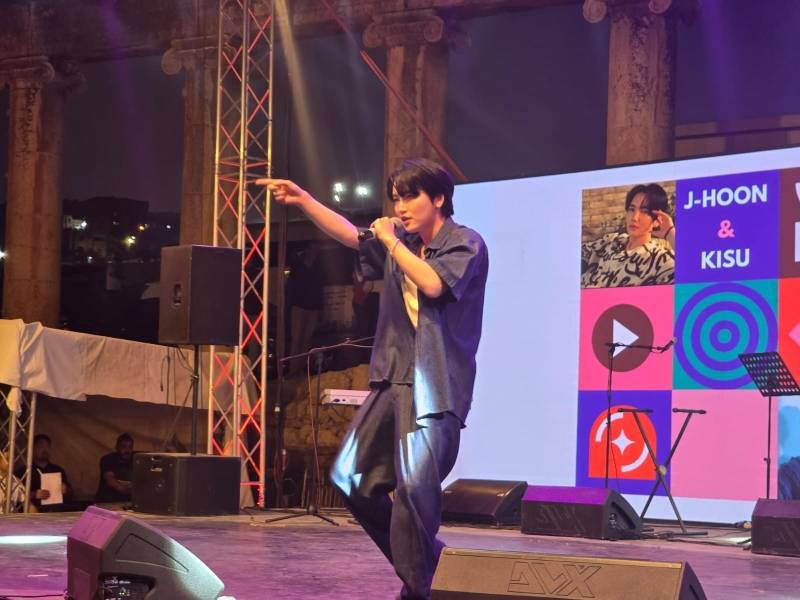 واستكمل الحفل بعرض فني للفنانين الكوريين "kisu " و "jung hoon ”الذي كان جمهور جرش في انتظارهم ليعيشوا تجربة جديدة وفريدة من نوعها مع الفن الكوري الحديث.