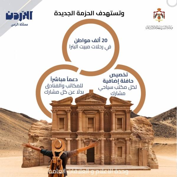 وأوضحت الوزارة في بيان لها أن إطلاق هذه الحزمة، التي تُقدّر قيمتها بمليون ونصف دينار من موازنة البرنامج إلى جانب المساهمات المباشرة من المشاركين، يأتي في إطار جهودها لتعزيز الحركة السياحية في مدينة البترا، وتمكين المجتمعات المحلية، وتوسيع قاعدة المستفيدين من البرنامج بما يتماشى مع مستجدات القطاع السياحي.