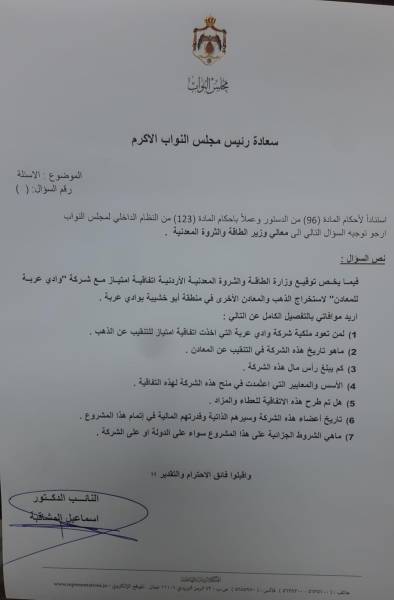 #عاجل..ما قصة التنقيب عن الذهب في وادي عربة ؟ النائب المشاقبة يسأل وزير الطاقة