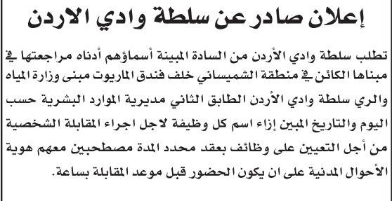 كما دعت سلطة المياه اليوم الثلاثاء التالية أسماؤهم لاجراء المقابلة الشخصية من أجل التعيين على وظائف بعقد محدد، وتاليا الأسماء: