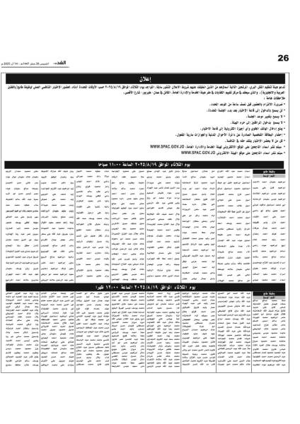 تدعو وزارة العدل ، امانة عمان الكبري ، هيئة تنظيم البحري ، المرشحين التالية أسماؤهم، لحضور الامتحان التنافسي الالكتروني، الذي سيعقد في مركز تقييم الكفايات في مقر هيئة الخدمة والإدارة العامة، الكائن في طبربور - شارع الأقصى.