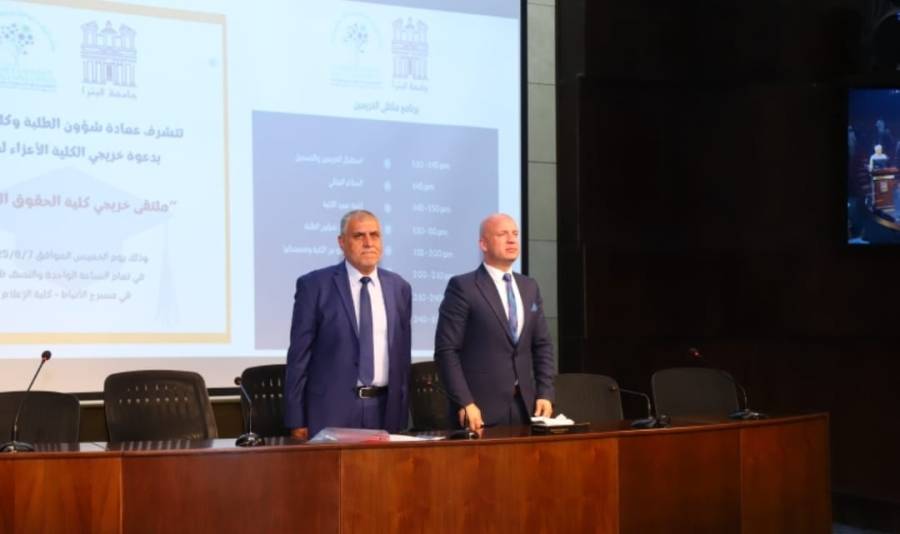 جاء ذلك خلال الملتقى الثالث لخريجي الكلية، الذي نظمته عمادة شؤون الطلبة وكلية الحقوق، بهدف تعزيز التواصل بين الجامعة وخريجيها، وتقوية روابط الانتماء والولاء، بحضور مدير وحدة ضمان الجودة، الدكتور أحمد القاسم.