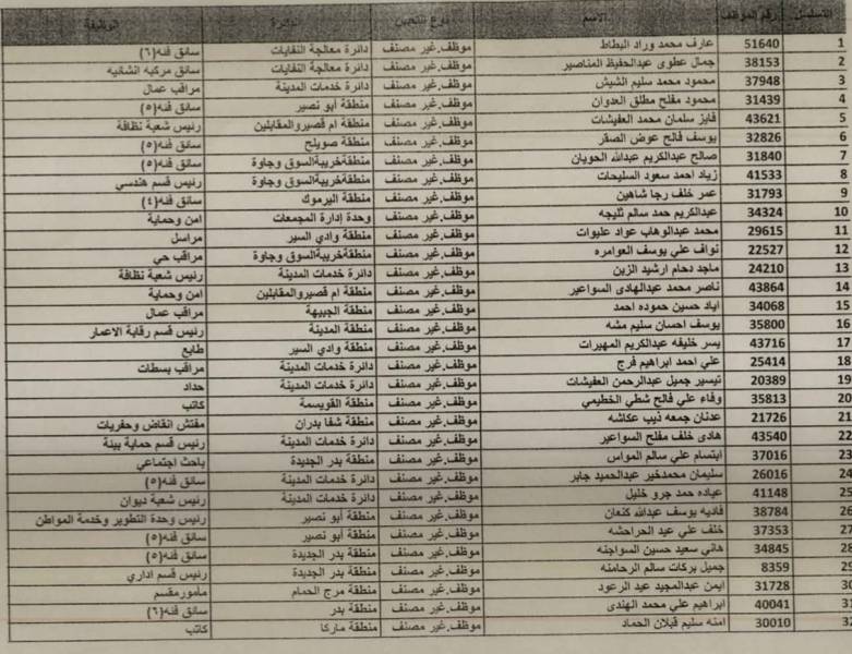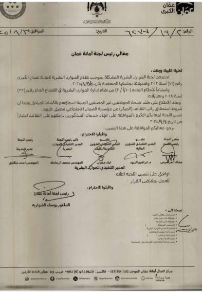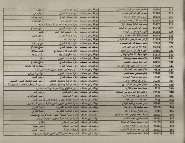 إحالة 355 موظفًا في أمانة عمّان إلى التقاعد (أسماء) #عاجل