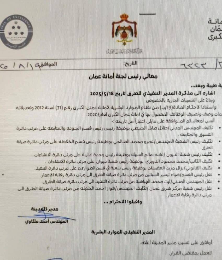 تنقلات واسعة في أمانة عمان الكبرى- اسماء