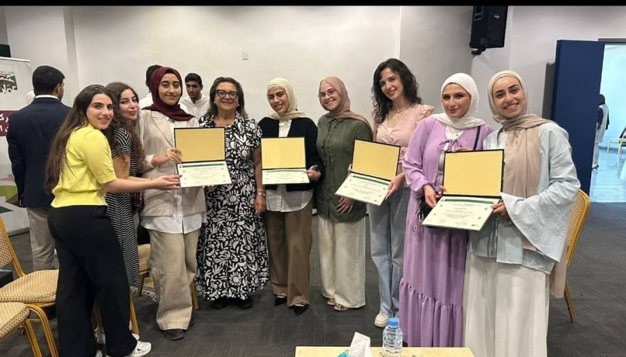 •فريق "Future Builders" المكوَّن من الطالبات: حنين حمدونة، زينة المعايطة، دانة سلو، روان الأحمد (من طلبة السنة الرابعة في هندسة العمارة بجامعة البترا) بالمركز الثاني، بإشراف الدكتورة هدير مرزه والمهندسة شذى قطيط.