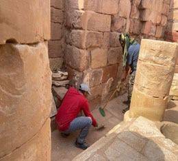وكثفت المديرية جهودها الميدانية في الموقع الأثري عبر تمشيط الأرضيات وإزالة الحجارة المتناثرة وتنظيف القنوات الأثرية من الأتربة والرواسب، إلى جانب تسوية المسارات وتجميع الحجارة الكبيرة في مواقع مخصصة لتسهيل رفعها. كما جرى العمل على إعادة تأهيل ساحة الخزنة من خلال تسوية الأرضيات وتنظيف محيط الموقع.