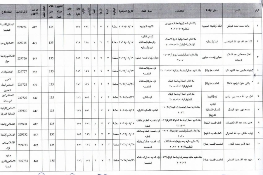 وزارة الادارة المحلية تطلب تعيين اردنيين بكالوريس وثانوية عامة -جداول