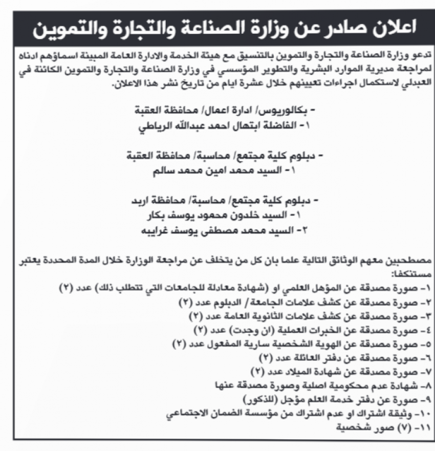 وتاليًا إعلانات التوظيف والمدعويين للتعيين: