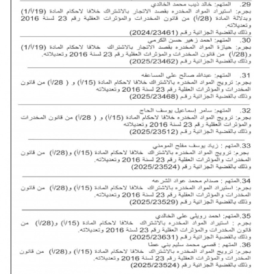 أمهل رئيس محكمة امن الدولة العقيد القاضي العسكري حسان خليف العودات 36 مطلوبًا مدة 10 أيام لتسليم أنفسهم إلى السلطات القضائية المختصة، لمحاكمة كل منهم عن التهم المسندة إليه.