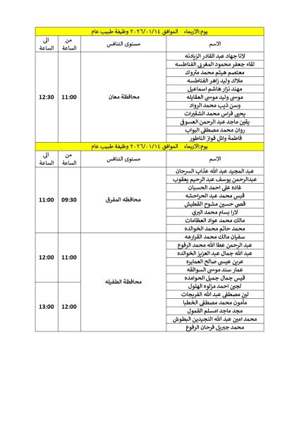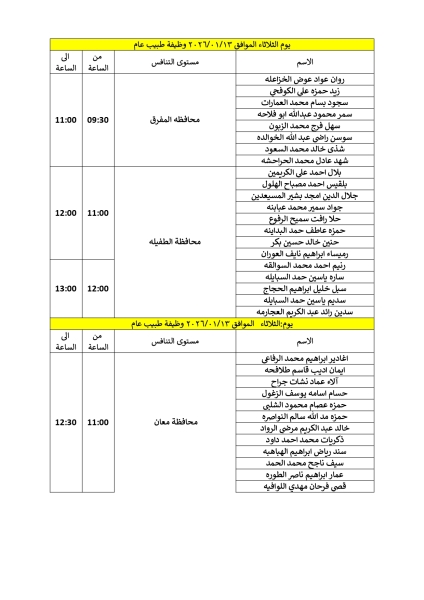 تدعو وزارة الصحة المرشحين المبينة أسماؤهم بالملف ادناه والذين اجتازوا الامتحان التنافسي بنجاح التواجد في مديرية الموارد البشرية / الطابق التاسع في مبنى الوزارة