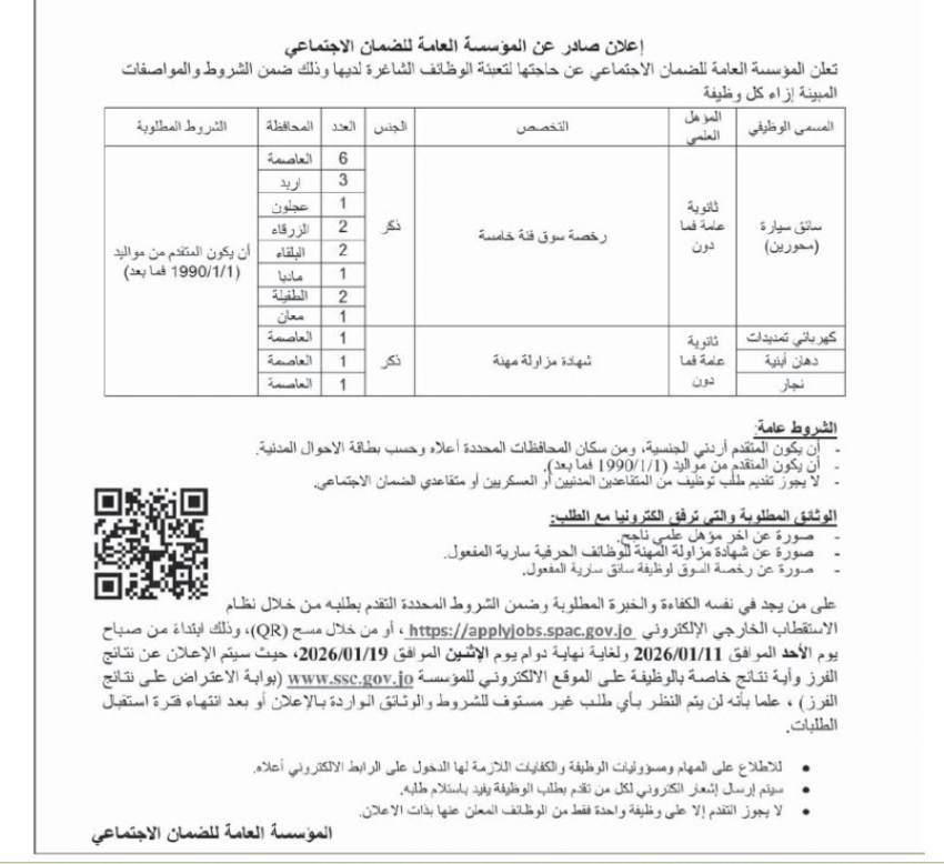 أعلنت عدد من الوزارات والمؤسسات الحكومية، عن رغبتها في تعبئة شواغر وظيفية.