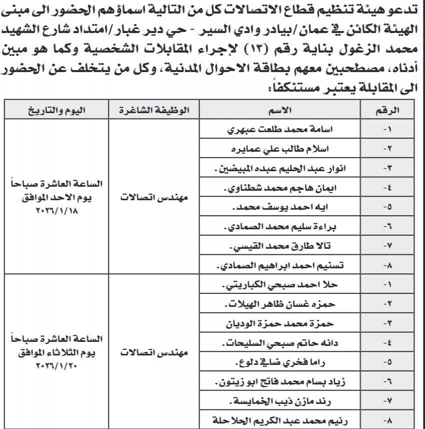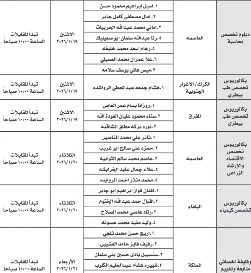 كما دعت دوائر ووزارات أخرى أشخاصًا لإجراء المقابلات الشخصية لغايات التعيين