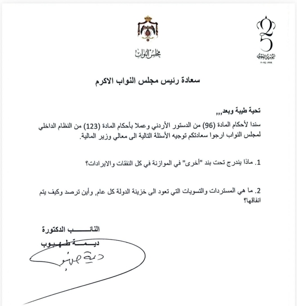 في أول سنة نيابة كنت كثيرا ما أجد في جداول الموازنة كلمة مبهمة "أخرى" وكانت ملحقة بجداول احتجت الى دراسة طويلة لافهمها، وكان لا بد من باب الشفافية والوعي المجتمعي الذي يساهم في جسر فجوة الثقة وتعزيز التزام المواطن لما يراه من مصداقية وأثر، أن أسأل الحكومة عن هذه "الأخرى" وما يندرج تحتها والحقتها بسؤال عن المستردات والتسويات وكيف يتم رصدها وانفاقها لمتابعة مسار المال العام.