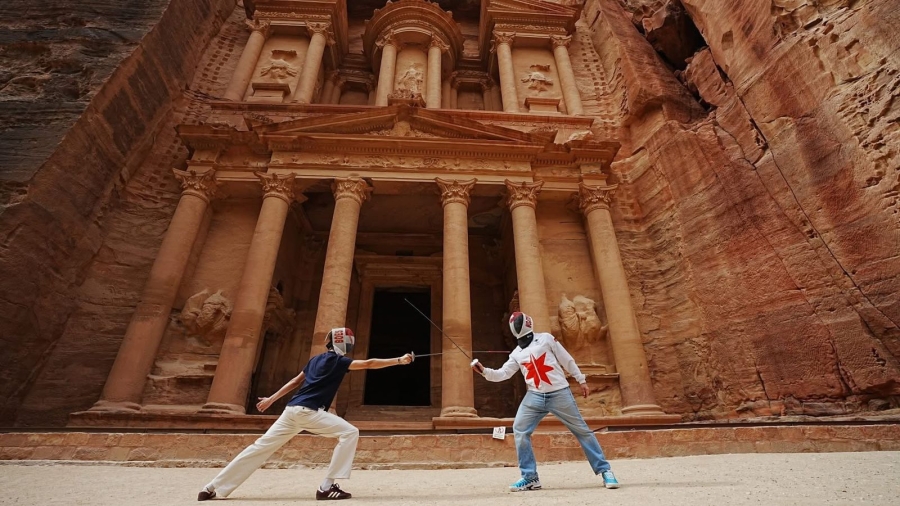 محادين يستقبل وفد “معسكر النشامى” للمبارزة وممثلي الاتحاد الأردني في البترا