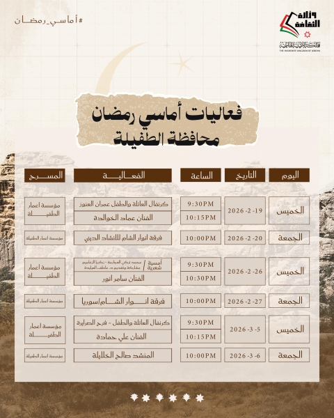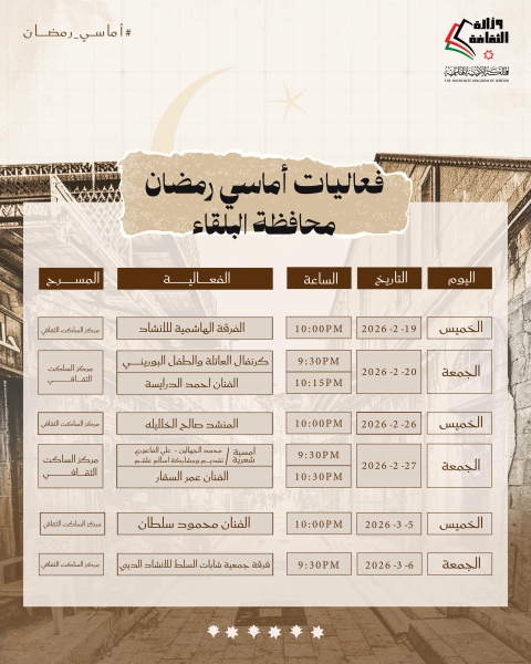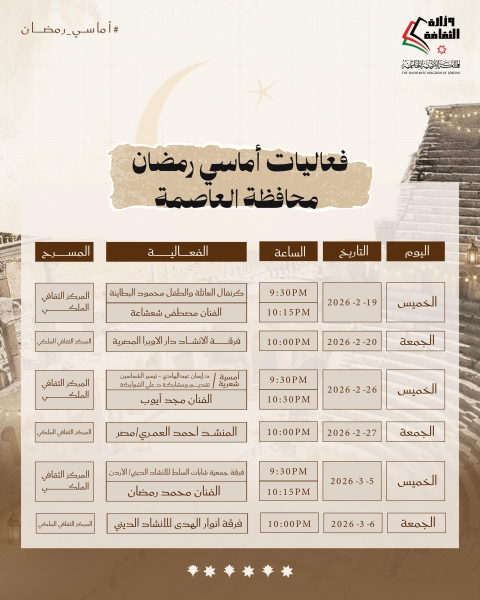 #عاجل..وزارة الثقافة تطلق برنامجها السنوي "أماسي رمضان"