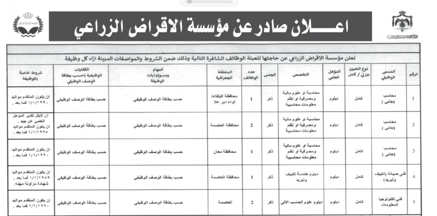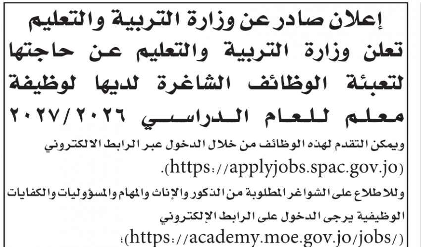 أعلنت عدد من المؤسسات والوزارات الحكومية حاجتها لتعبئة شواغر وظيفية.