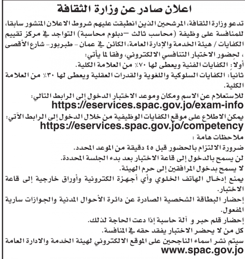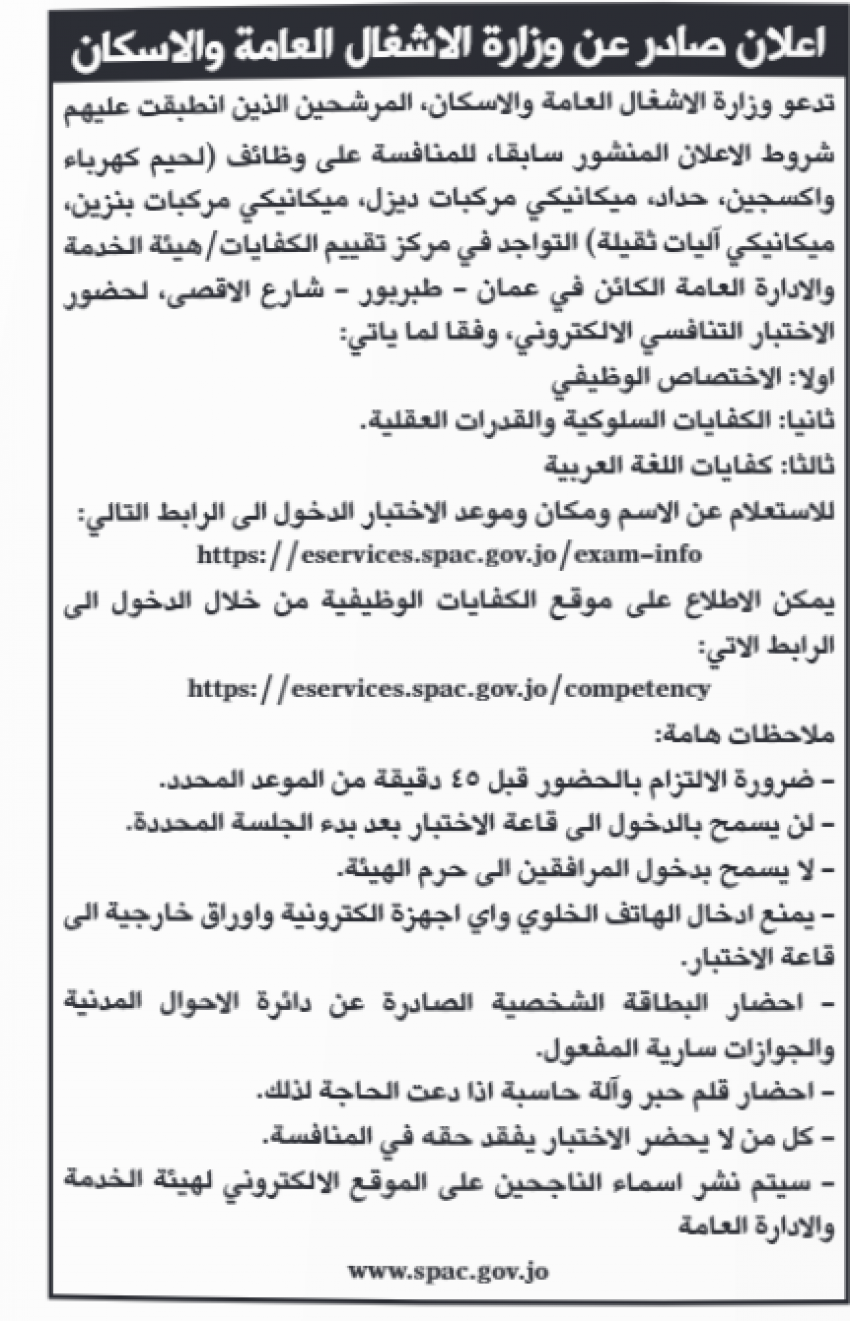 كما دعت مؤسسات حكومية أخرى، عدد من مجتازي الامتحانات التنافسية إلى المقابلات الشخصية لغايات التعيينات.