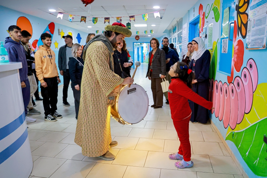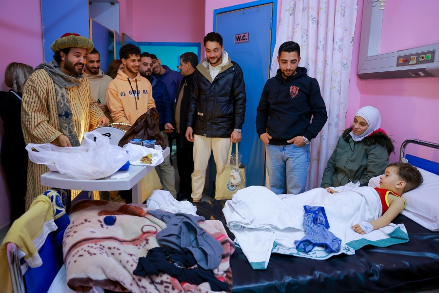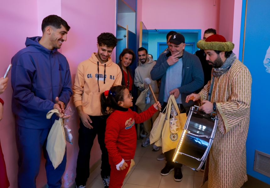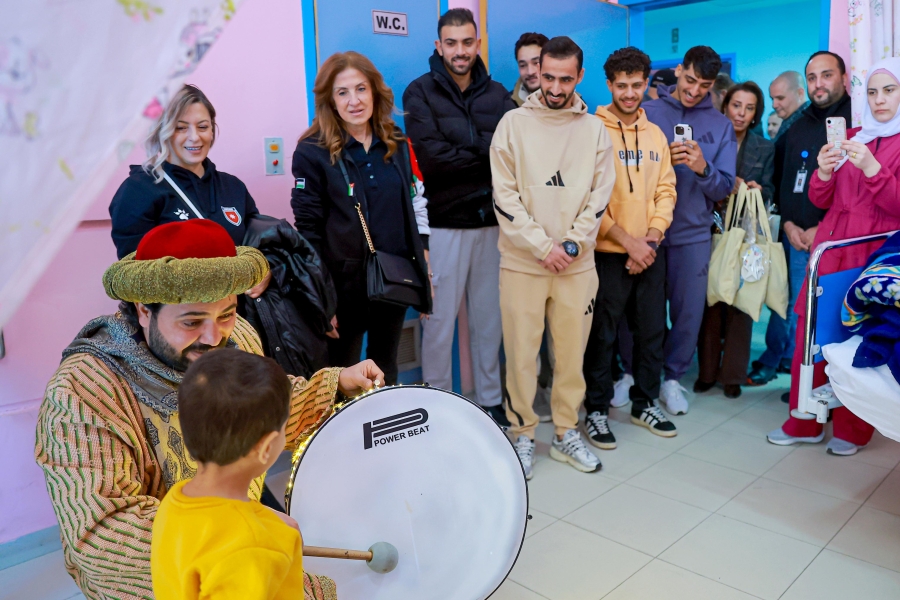 واستقبال الوفد مدير المستشفى د. جهاد المعاني، قبل قيام لاعبي كرة القدم أحمد العرسان ومهند خيرالله وعبدالله الفاخوري ولاعبي الكراتيه محمد الجعفري ووسيم سلامه يرافقهم اعضاء مجلس إدارة الرابطة د. بشار الحوامده، والسيدة ايمان العزب رئيسة اللجنة الاجتماعية والأمين العام أحمد قطيشات وحضور أعضاء اللجنة الاجتماعية، مؤيد سليم، ديانا الدلو، لبنى كرادشة، روجينا سليمان وعثمان الحسنات بالتجول داخل القسم وزيارة غرف المرضى والحديث معهم والتقاط الصور التذكارية مع الأطفال الذين كانوا في غاية السعادة.