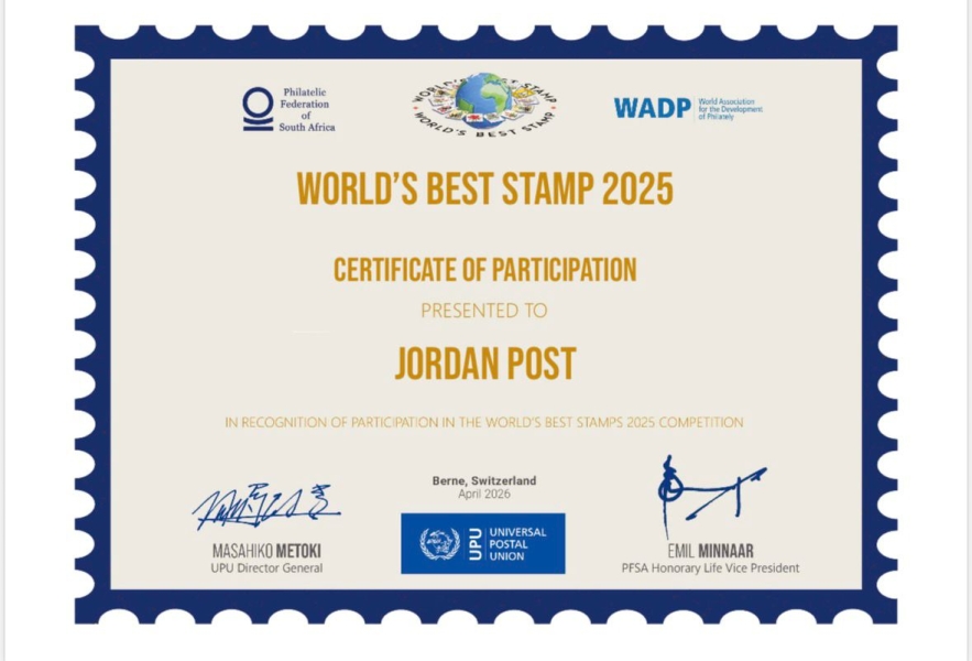 البريد الأردني يحصد المركز الثالث في مسابقة “أفضل طابع : البريد الأردني يحصد المركز الثالث في مسابقة “أفضل طابع في العالم 2025”