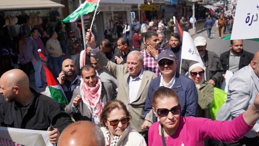 عطية يشارك في مسيرة حاشدة دعماً لمواقف الملك ورفضاً لانتهاكات الاحتلال