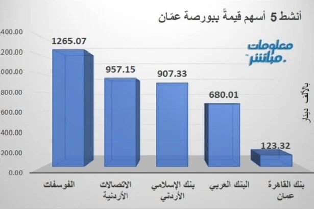 الفوسفات يتصدر النشاط قيمةً والاتصالات الأردنية حجماً ببورصة عمّان