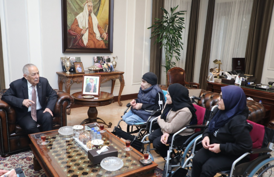 بناء على توجيهات جلالة الملك عبدالله الثاني، استضاف رئيس الديوان الملكي الهاشمي يوسف حسن العيسوي، صباح اليوم الأحد، أسرة أردنية تجسد معاني الصبر والتعفف، مكونة من ثلاثة أشقاء (شابتان وشاب) من ذوي الإعاقة، يواجهون ظروفاً معيشية قاسية تفتقر لأبسط مقومات الحياة الكريمة، وذلك للوقوف على احتياجاتهم والاستماع لمطالبهم بشكل مباشر.